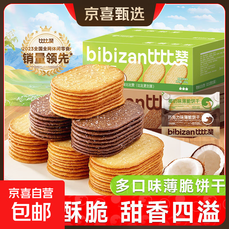 包邮 比比赞黑麦海盐苏打饼干整箱梳打早餐解馋小零食小吃休闲食品批发 【到手2箱】比比赞椰香薄脆300g*2